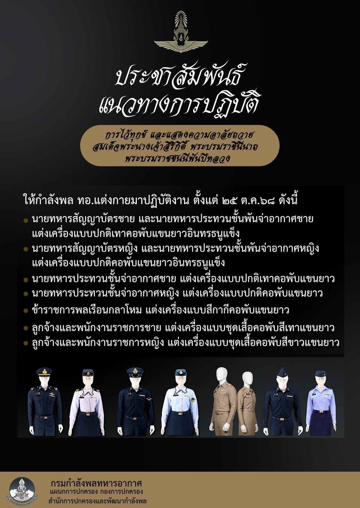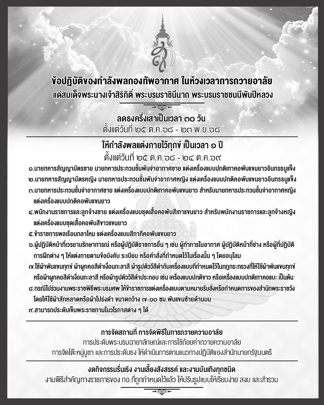 แนวทางปฏิบัติกำลังพลกองทัพอากาศ ในห้วงเวลาการถวายอาลัย แด่สมเด็จพระนางเจ้าสิริกิติ์ พระบรมราชินีนาถ พระบรมราชชนนีพันปีหลวง