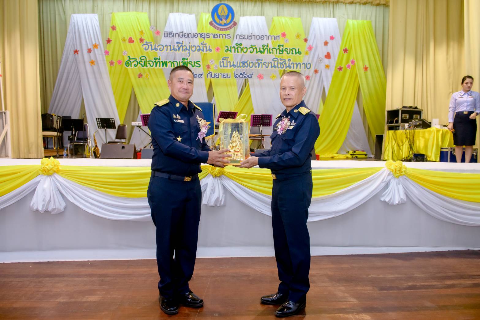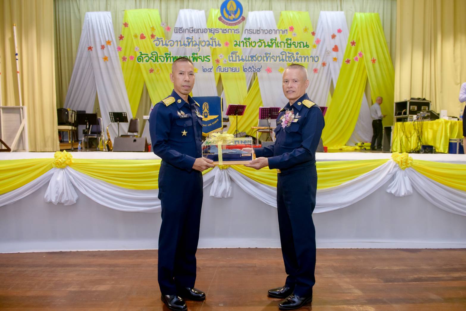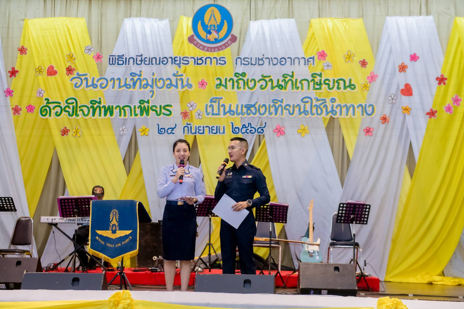 พลอากาศตรี ศักดิธัช กุลวุฒิภาคย์ เสนาธิการกรมช่างอากาศ เป็นประธานในการประกอบพิธีอำลาเกษียณอายุราชการ ประจำปี ๒๕๖๘ ของกรมช่างอากาศ โดยมีคณะผู้บังคับบัญชา สมาชิกสมาคมคู่สมรสกรมช่างอากาศ นายทหารชั้นผู้ใหญ่ ข้าราชการ ลูกจ้าง และพนักงานราชการ เข้าร่วมในพิธี พร้อมมอบของที่ระลึกให้แก่กำลังพลสังกัดกรมช่างอากาศที่ครบกำหนดเกษียณอายุราชการ เพื่อเป็นการขอบคุณที่ได้ตั้งใจปฏิบัติหน้าที่ราชการอย่างเต็มกำลังความสามารถ ทุ่มเทกำลังกาย กำลังใจ และพลังสติปัญญา ในการปฏิบัติภารกิจของกรมช่างอากาศ ให้สำเร็จลุล่วงด้วยดี ตลอดอายุการรับราชการ เมื่อวันที่ ๒๔ กันยายน ๒๕๖๘ ณ ห้องสุขเสริม สโมสรทหารอากาศ บางซื่อ
