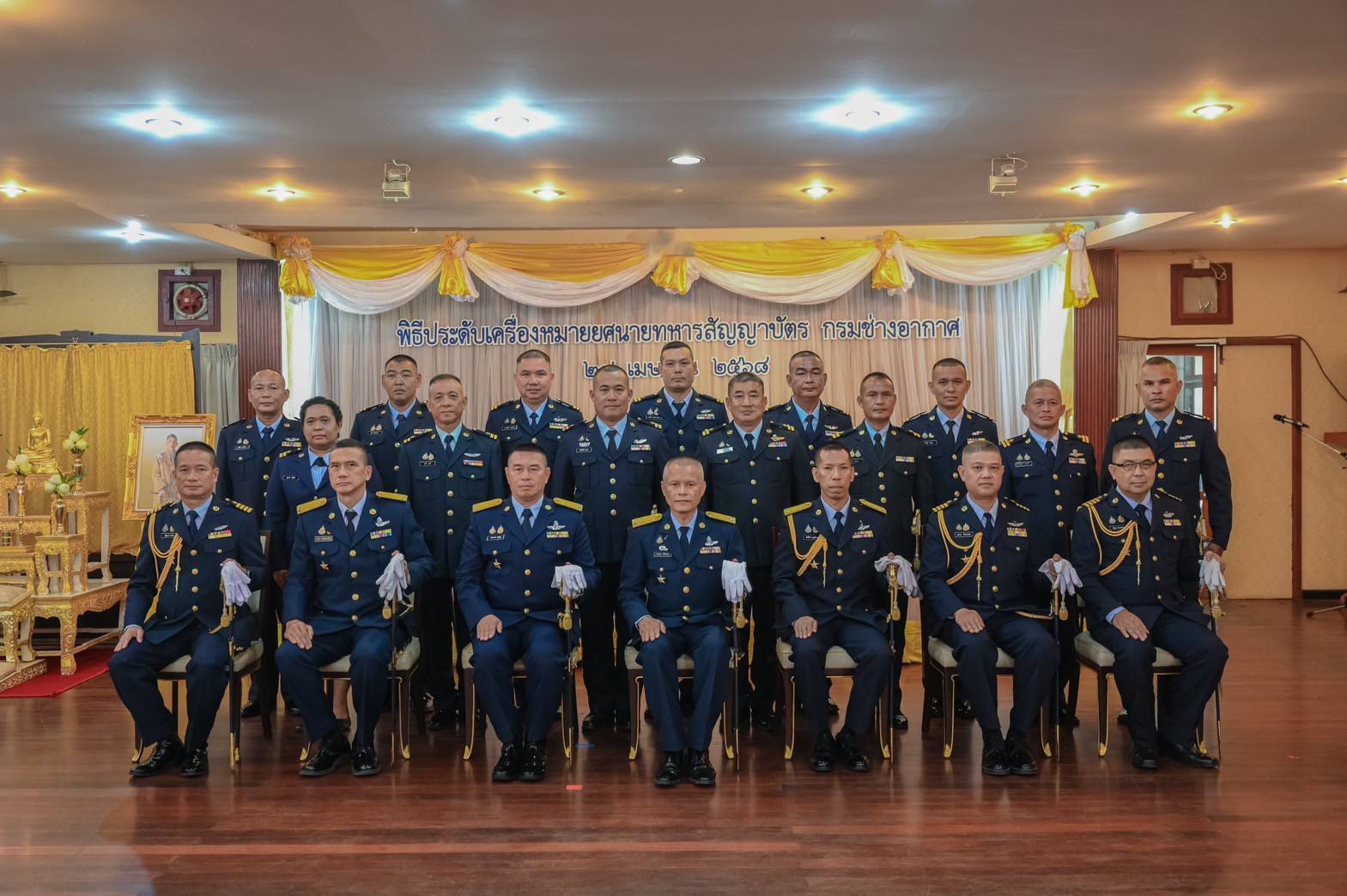 พลอากาศโท พงศ์สฤก โพธิ์ประยูร เจ้ากรมช่างอากาศ เป็นประธานในพิธีประดับเครื่องหมายยศ นายทหารสัญญาบัตร สังกัดกรมช่างอากาศ โดยมีนายทหารชั้นผู้ใหญ่ ผู้บังคับบัญชา หัวหน้าหน่วยขึ้นตรง ร่วมแสดงความยินดีและเป็นเกียรติในพิธี เมื่อวันที่ ๒๘ เมษายน ๒๕๖๘ ณ ห้องสุนทรากูล สโมสรทหารอากาศ บางซื่อ
