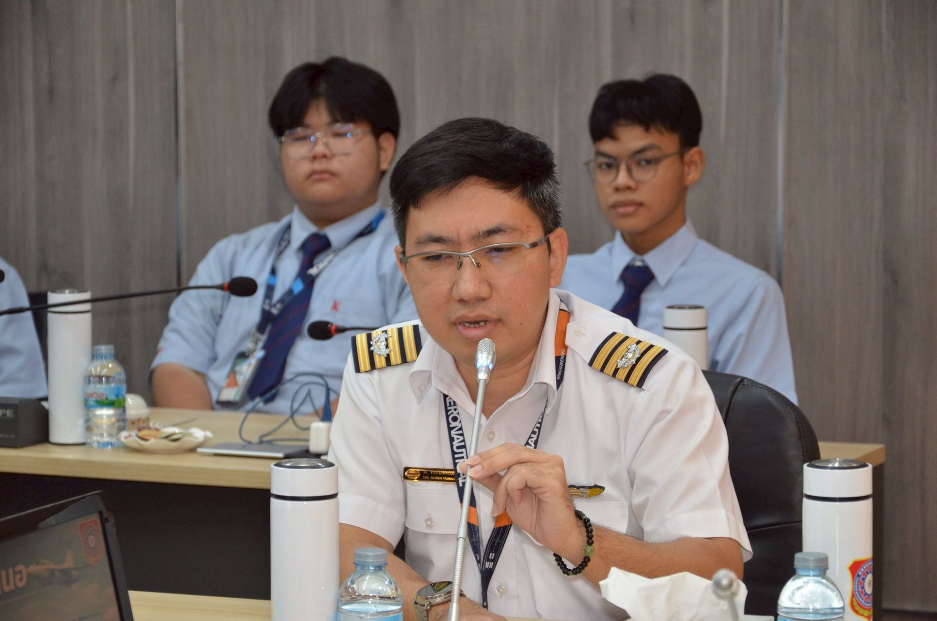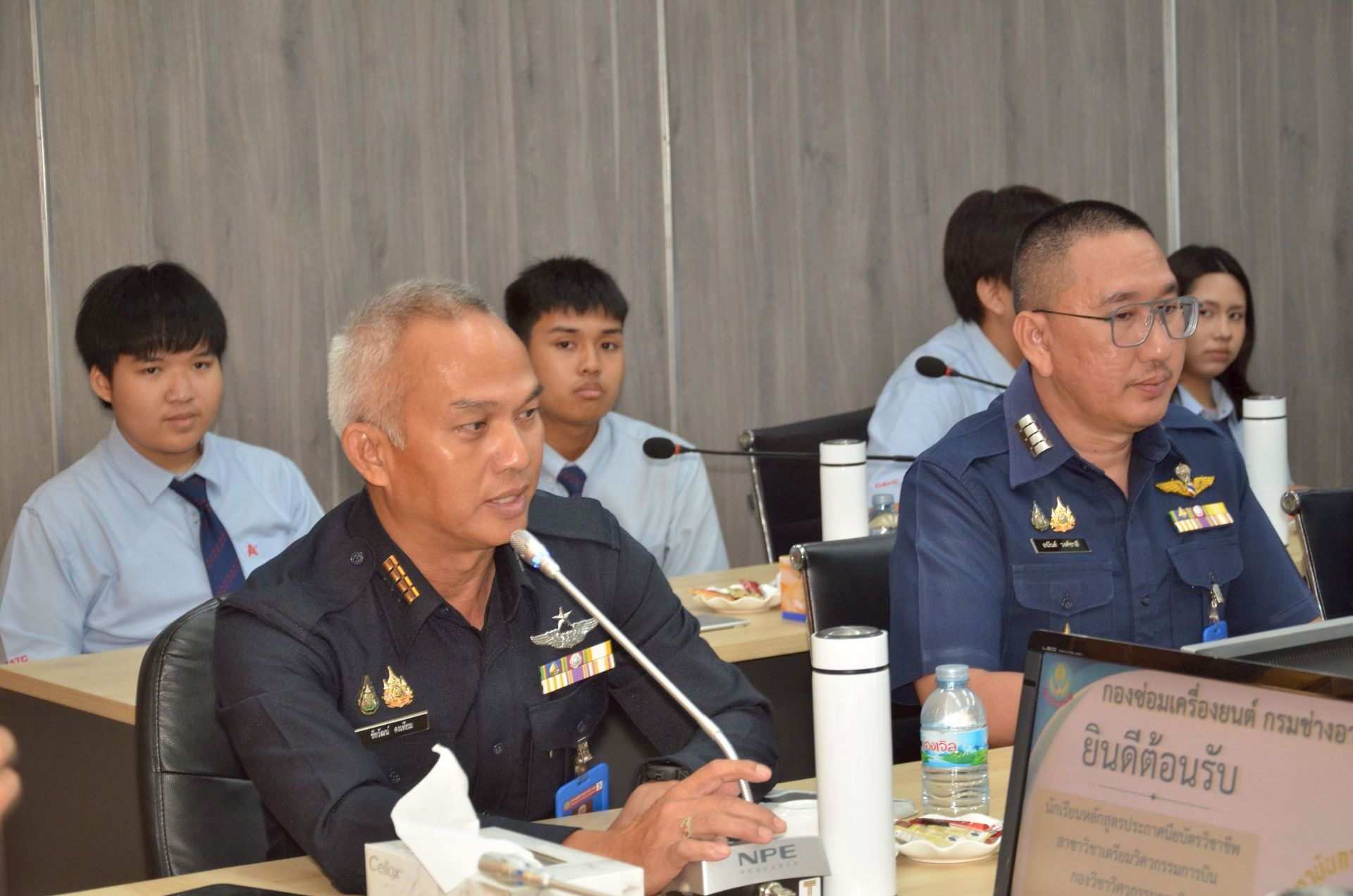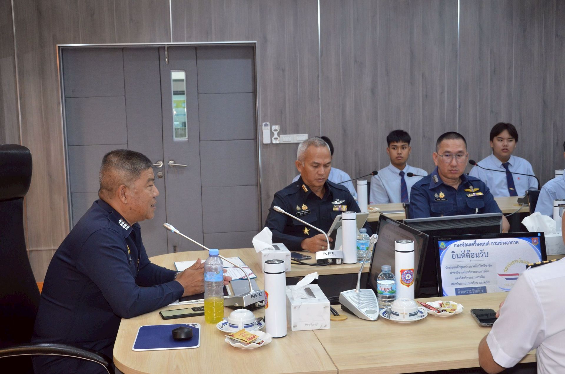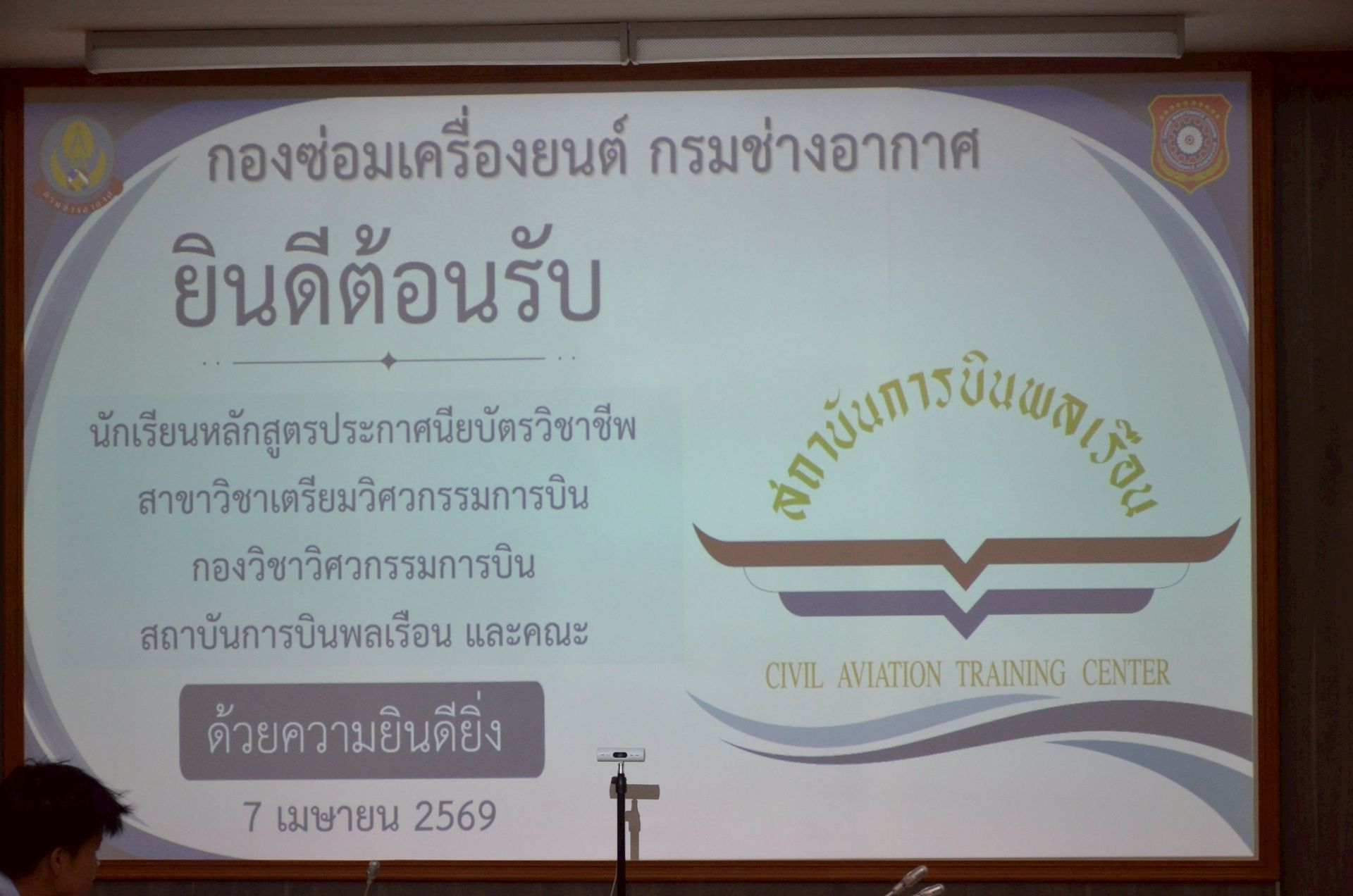 นาวาอากาศเอก จักรี รังสินธุ์ ผู้อำนวยการกองซ่อมเครื่องยนต์ กรมช่างอากาศ ให้การต้อนรับคณะอาจารย์และนักเรียนหลักสูตรประกาศนียบัตรวิชาชีพ สาขาวิชาเตรียมวิศวการบิน กองวิชาวิศวกรรมการบิน สถาบันการบินพลเรือน จำนวน ๒๐ คน ในโครงการฝึกงาน ปีการศึกษา ๒๕๖๘ ณ กองซ่อมเครื่องยนต์ กรมช่างอากาศ เมื่อวันอังคารที่ ๗ เมษายน ๒๕๖๙