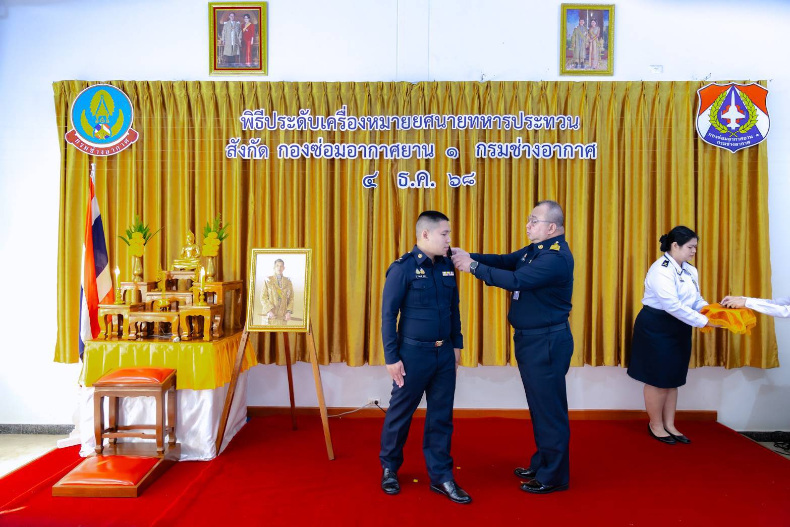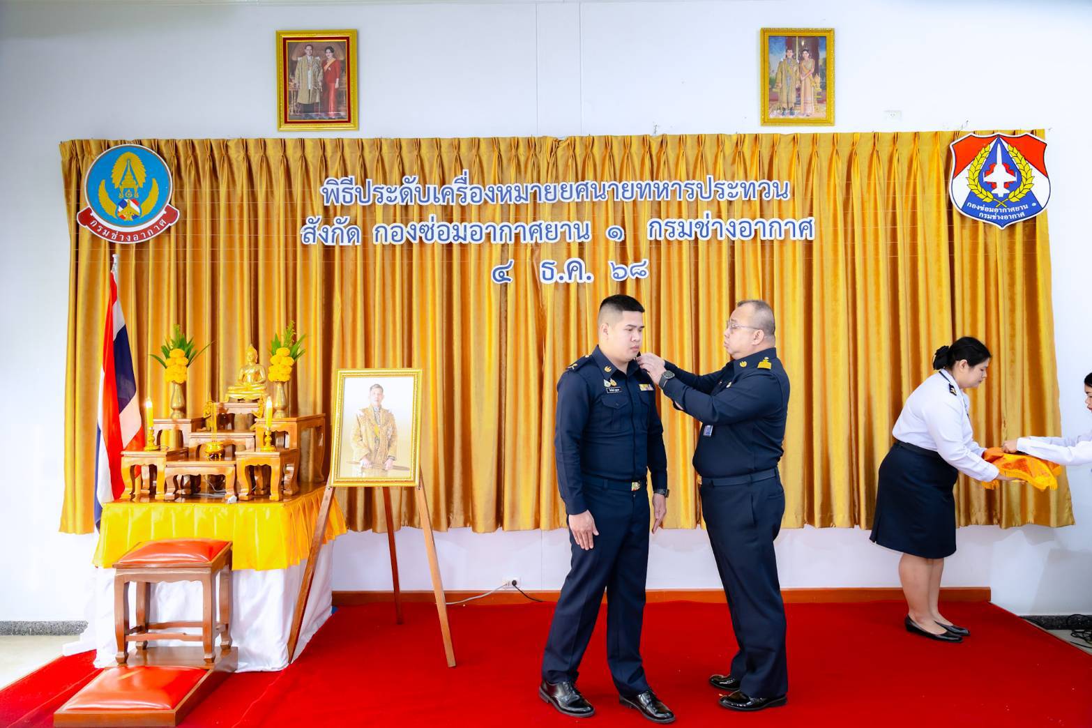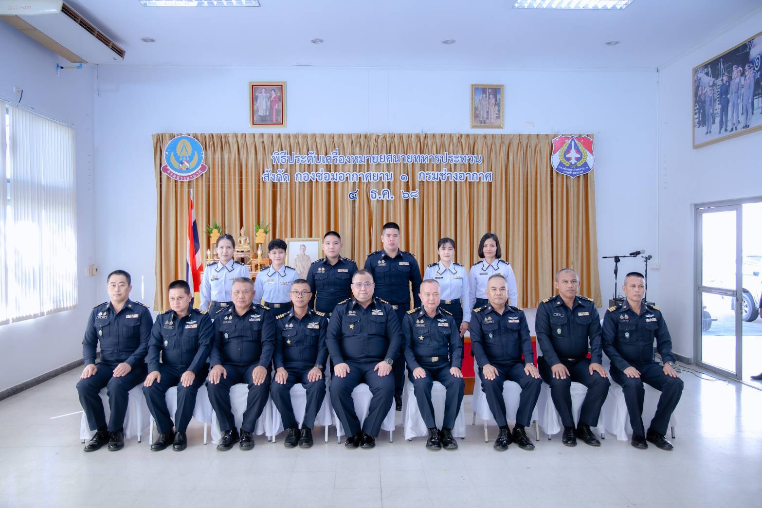 นาวาอากาศเอก สุทธิพงษ์ เมธาพัฒนะ ผู้อำนวยการ กองซ่อมอากาศยาน๑ กรมช่างอากาศ เป็นประธานในพิธีประดับเครื่องหมายยศ นายทหารชั้นประทวน สังกัดกองซ่อมอากาศยาน๑ กรมช่างอากาศ โดยมีนายทหารชั้นผู้ใหญ่ ผู้บังคับบัญชา หัวหน้าหน่วยขึ้นตรง ร่วมแสดงความยินดีและเป็นเกียรติในพิธี เมื่อวันที่ ๔ ธันวาคม ๒๕๖๘ ณ ห้องเอนกประสงค์ กองซ่อมอากาศยาน๑ กรมช่างอากาศ
