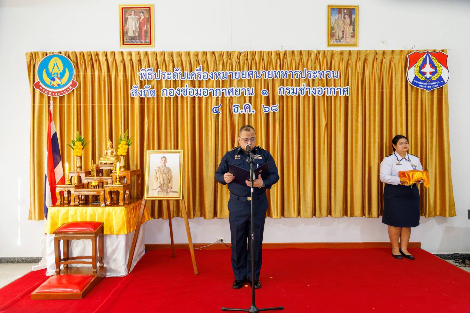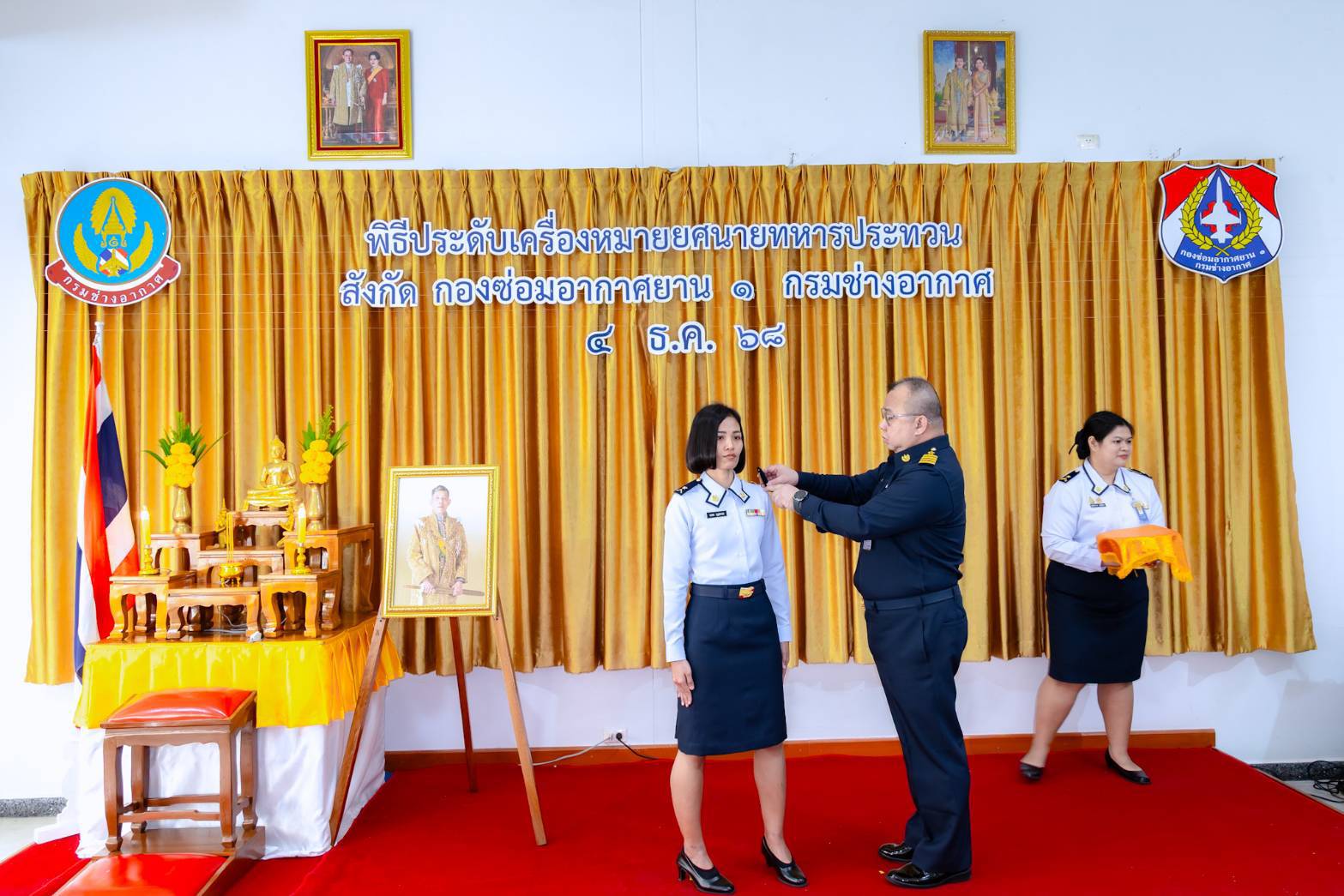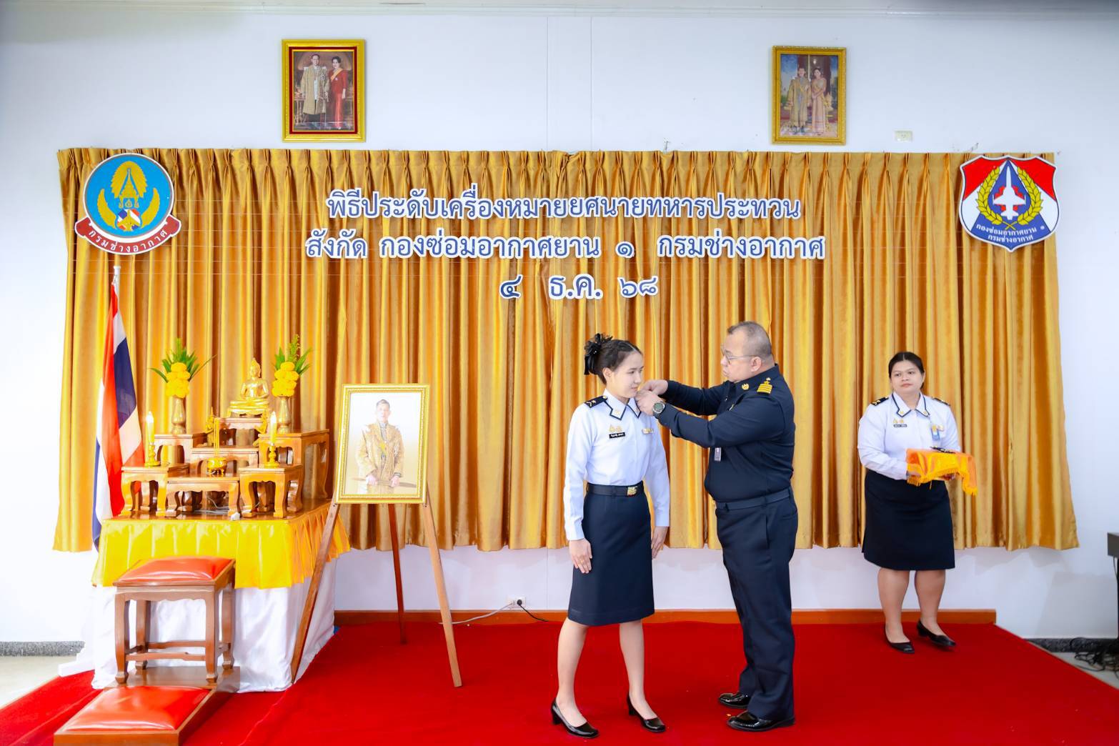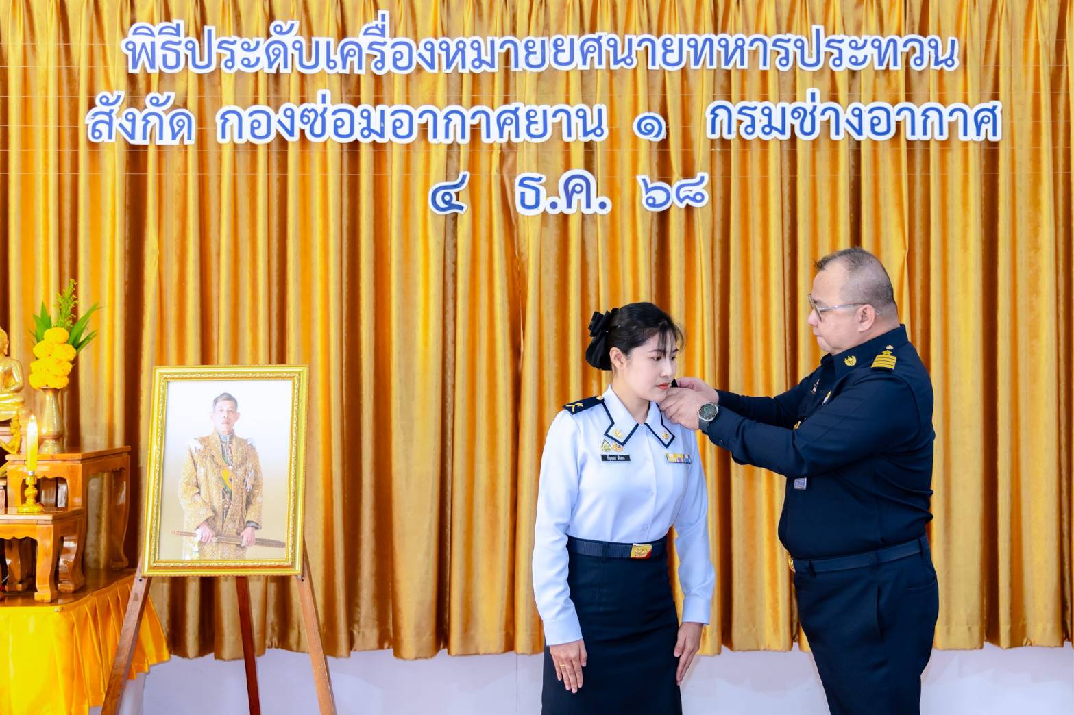 นาวาอากาศเอก สุทธิพงษ์ เมธาพัฒนะ ผู้อำนวยการ กองซ่อมอากาศยาน๑ กรมช่างอากาศ เป็นประธานในพิธีประดับเครื่องหมายยศ นายทหารชั้นประทวน สังกัดกองซ่อมอากาศยาน๑ กรมช่างอากาศ โดยมีนายทหารชั้นผู้ใหญ่ ผู้บังคับบัญชา หัวหน้าหน่วยขึ้นตรง ร่วมแสดงความยินดีและเป็นเกียรติในพิธี เมื่อวันที่ ๔ ธันวาคม ๒๕๖๘ ณ ห้องเอนกประสงค์ กองซ่อมอากาศยาน๑ กรมช่างอากาศ