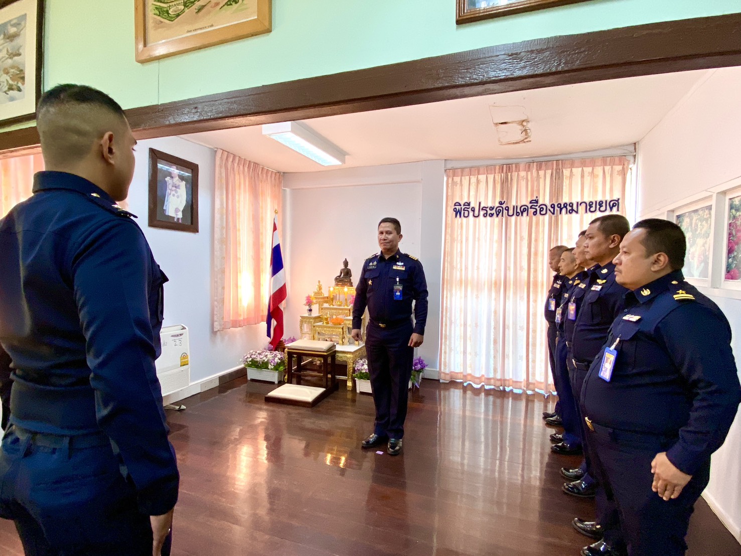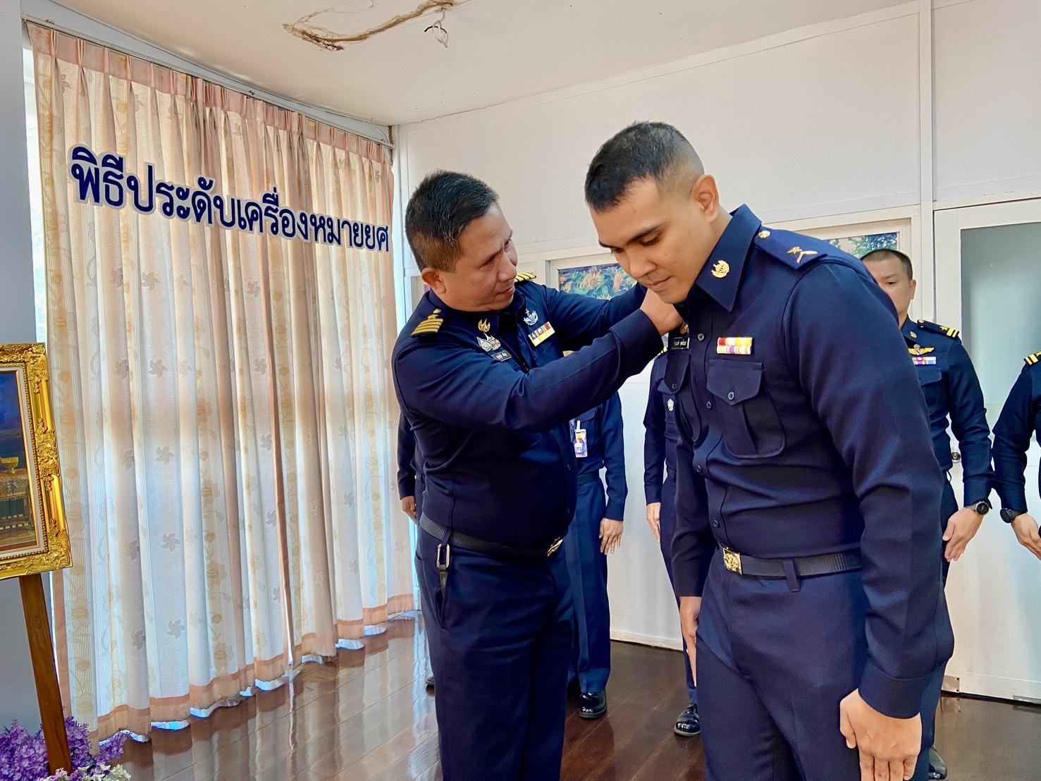 นาวาอากาศเอกญาณวุฒิ ศรีนุ่น หัวหน้ากองบริการ กรมช่างอากาศ เป็นประธานในพิธีประดับเครื่องหมายยศให้แก่นายทหารชั้นประทวนที่ได้เลื่อนยศสูงขึ้น โดยมีผู้บังคับบัญชา และหัวหน้าหน่วยขึ้นตรงของกองบริการ กรมช่างอากาศ ร่วมแสดงความยินดี และเป็นเกียรติในพิธี ณ อาคารสำนักผู้บังคับบัญชา กองบริการ กรมช่างอากาศ เมื่อวันที่ ๓ ธันวาคม ๒๕๖๘