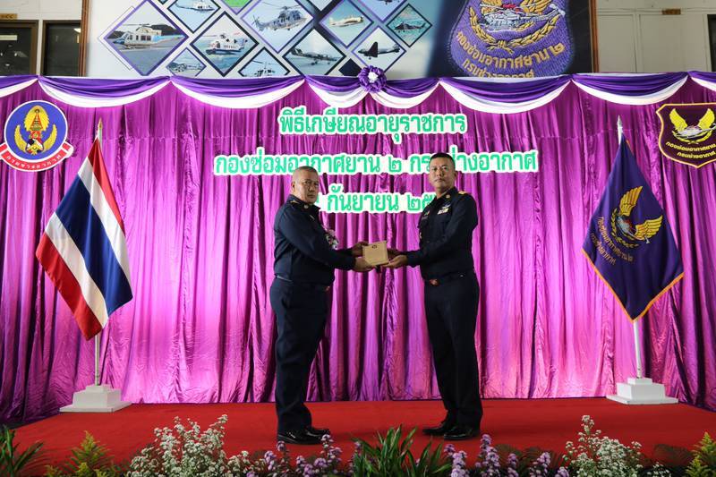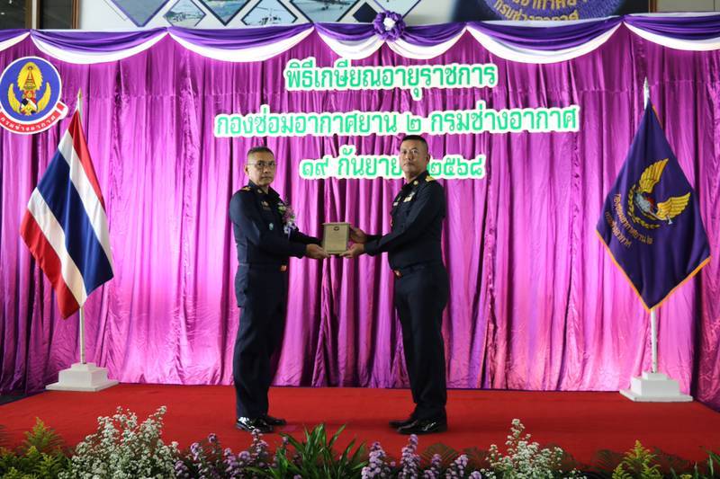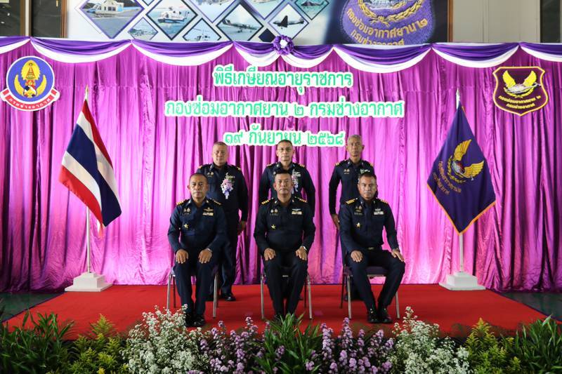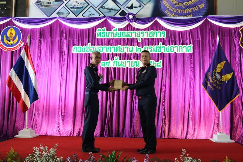นาวาอากาศเอกหัสชัย ป้อมบุญมี ผู้อำนวยการกองซ่อมอากาศยาน ๒ กรมช่างอากาศ เป็นประธานในวันสถาปนากองซ่อมอากาศยาน ๒ กรมช่างอากาศ โดยมี นาวาอากาศเอกวุธากาส สุทธิกุล รองผู้อำนวยการกองซ่อมอากาศยาน ๒ กรมช่างอากาศ นาวาอากาศเอกชยพันธุ์ พูลทรัพย์ นายทหารช่างอากาศกองซ่อมอากาศยาน ๒ กรมช่างอากาศ นายทหารชั้นผู้ใหญ่ หัวหน้าหน่วยขึ้นตรง พร้อมด้วยข้าราชการ ลูกจ้าง และ พนักงานราชการ กองซ่อมอากาศยาน ๒ กรมช่างอากาศ ร่วมพิธีเกษียณอายุราชการพิธีสงฆ์และพร้อมมอบของที่ระลึกให้แก่ ผู้เกษียณอายุราชการ ๒๕๖๘ เมื่อวันศุกร์ที่ ๑๙ กันยายน ๒๕๖๘ ณ อาคารโรงเก็บ ๓ กองซ่อมอากาศยาน ๒ กรมช่างอากาศ
