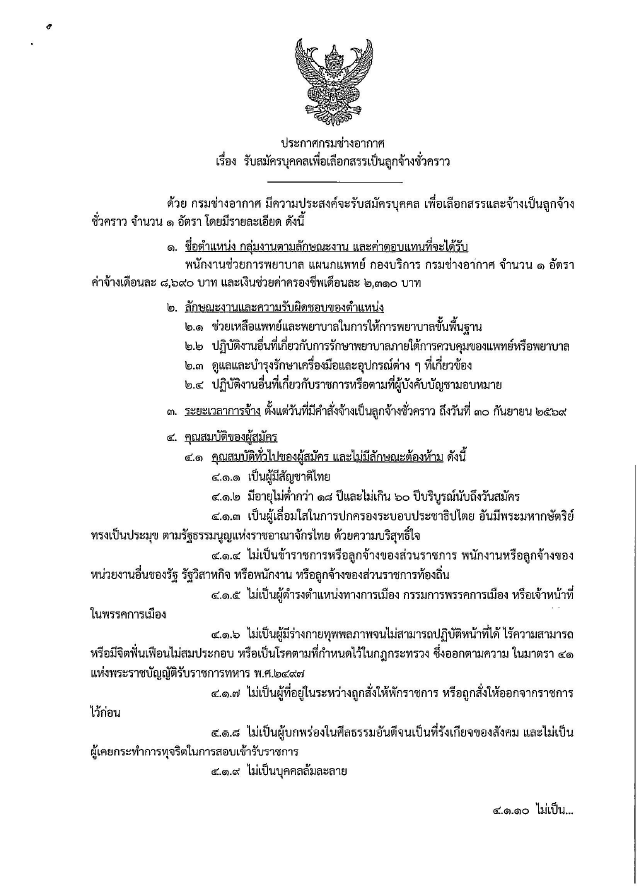 รับสมัครบุคคลเพื่อเลือกสรรเป็นลูกจ้างชั่วคราว