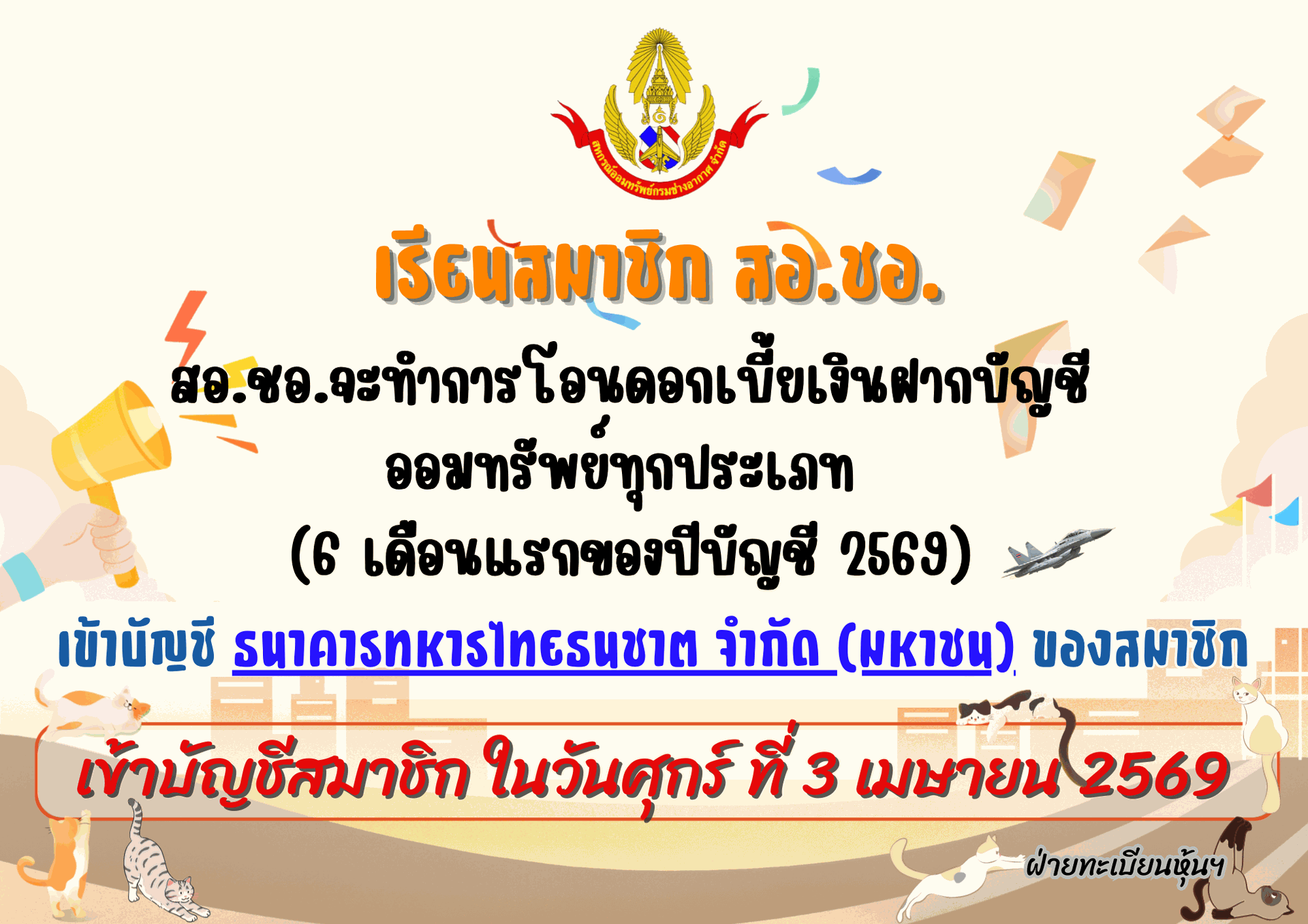 ประกาศ สอ.ชอ. เรื่องโอนดอกเบี้ยเงินฝากทุกประเภท